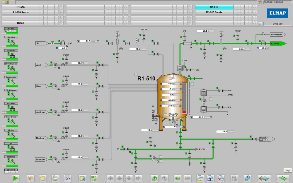 - Control system development for two reactors, 50 and 1000 liter capacity